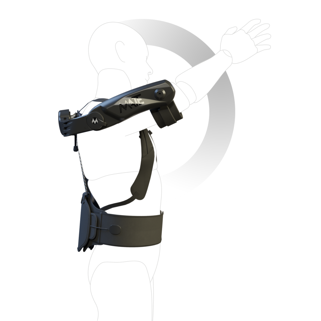 The biomechanical effect of MATE on the user’s body has been constantly documented by medical centers and biomedical engineering teams since the very start of its development. The findings of a recently-published scientific study indicate that the device effectively reduces the physical demand of the shoulder girdle by minimizing the transfer of undesired force to the user’s musculoskeletal system, thanks to its human–robot kinematic coupling. You can download the study HERE.