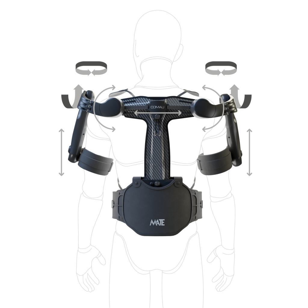 It is a passive spring-loaded exoskeleton suit (i.e., no motorized joints or batteries) designed to provide workers with antigravitational support for shoulder flexion-extension. MATE is particularly indicated for overhead tasks.